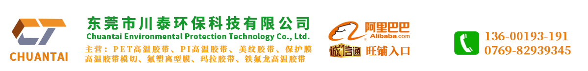東莞市川泰環(huán)保科技有限公司是一家專業(yè)獨立開發(fā).生產(chǎn).銷售各種高溫綠色膠帶、高溫紅美紋膠帶、PET氟塑離型膜、冰箱膠帶、高低粘PET保護膜、PI高溫膠帶.PI高溫單面.雙面膠帶.醋酸膠布、PET夾芯雙面膠帶、銅鉑膠帶、鋁鉑膠帶、軟性線路板膠帶、PET薄膜單面(雙面)膠帶、遮噴膠帶等工業(yè)膠帶的獨資民營企業(yè)。